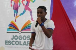 O responsável por fazer o juramento do atleta foi o Aluno Matheus Alves (14), da escola Raimundo Mata: “estar nestes jogos é bom, da uma energia a mais, é minha segunda participação, e a primeira vez que participo como responsável pelo juramento.” Informa.