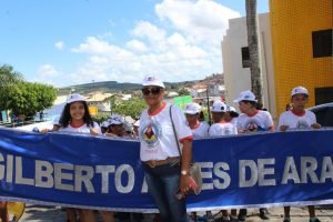 As escolas Gilberto Alves Araújo, Arlindo Ribeiro de Almeida, Professor Jecelino José Nogueira e Themístocles Cezar Góes, desfilaram pelo centro da cidade, tendo como linha de frente a Fanfarra Municipal da Escola Gilberto Alves (FAMEG), levando a mensagem da paz e a não tolerância à violência, drogas e a indisciplina. Temas como bulling e educação foram abordados também.