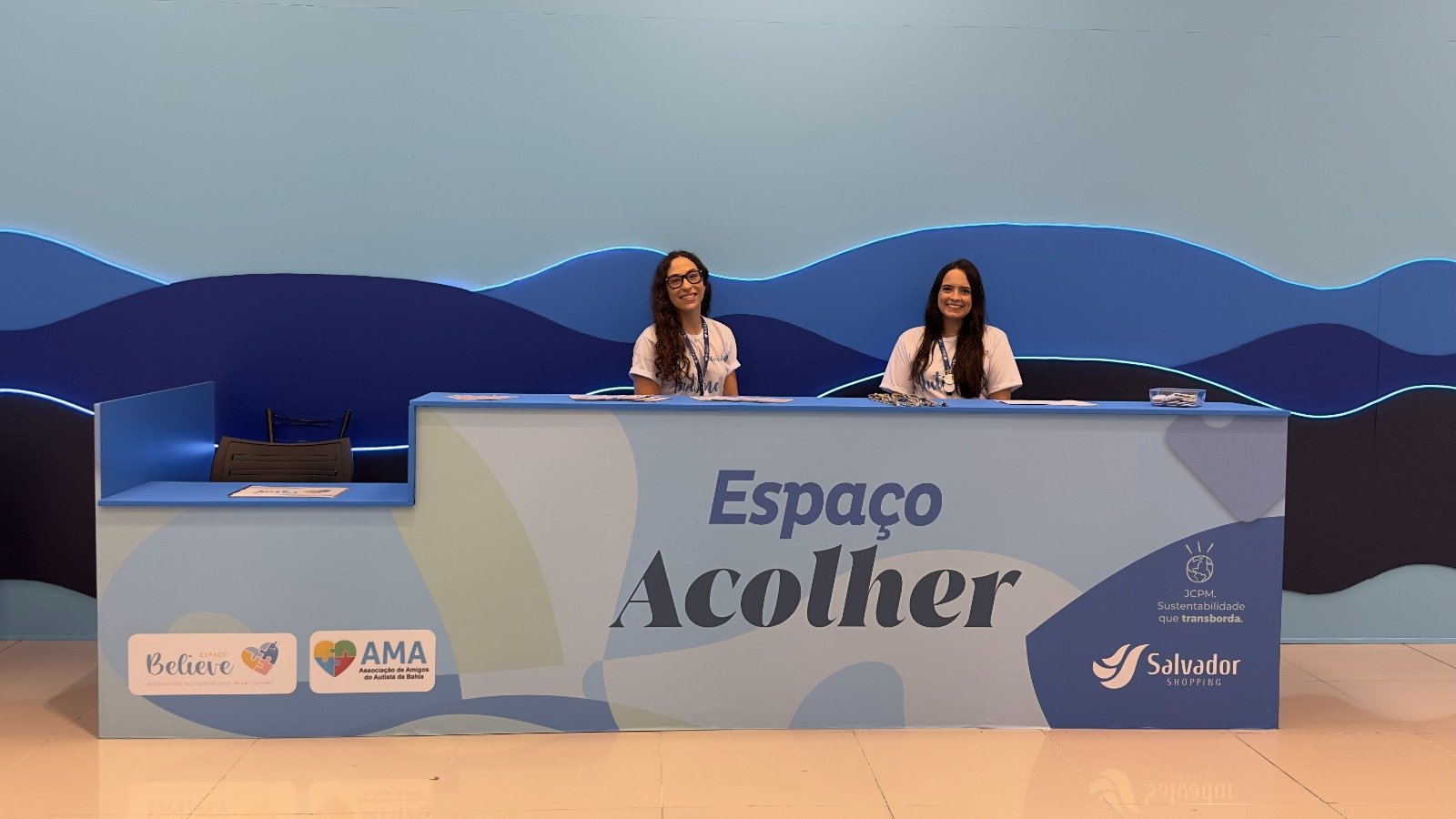 Como ponto central da programação, o Espaço Acolher (piso L2) inicia suas atividades funcionando como um ambiente preparado para acolhimento, orientação e suporte ao público. O espaço opera de segunda a sábado, das 9h às 22h, e aos domingos, das 12h às 21h, oferecendo a distribuição de cordões de identificação para pessoas com TEA (mediante apresentação de laudo), entrega de broches de identificação e uma estrutura cuidadosamente planejada para promover conforto sensorial, com o apoio de uma equipe multidisciplinar da Clínica Believe, formada por psicólogos, acompanhantes terapêuticos, psicopedagogos, entre outras especialidades.