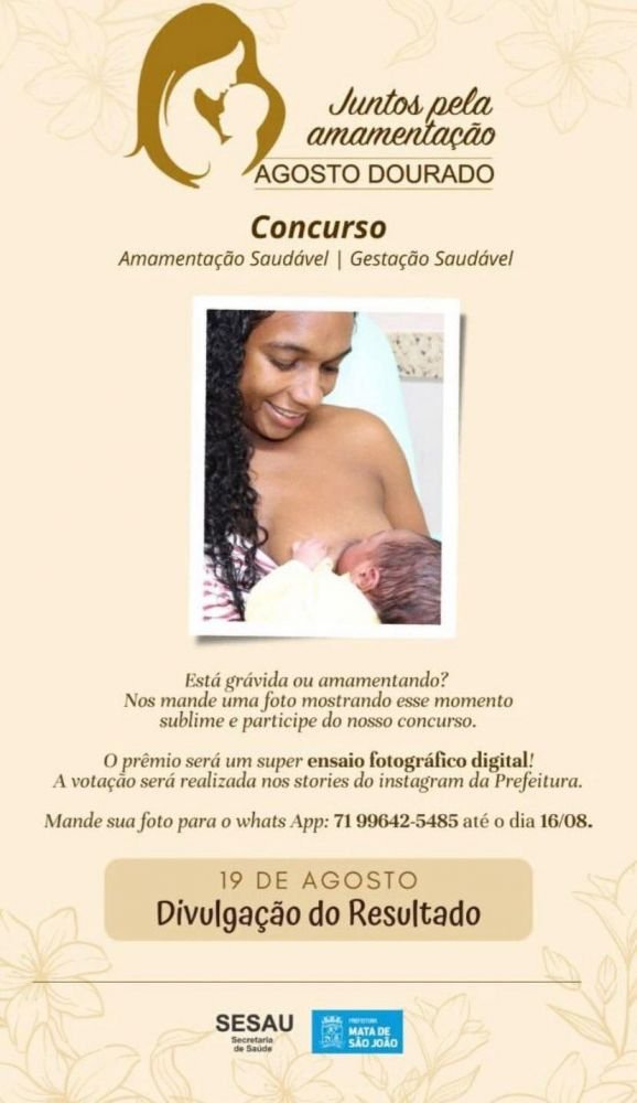 As mamães interessadas em participar devem enviar a foto para o WhatsApp 71 99642-5485 (Centro de Parto Natural) até dia 16 de agosto. A votação acontece nos stores do instagram da prefeitura e o resultado será divulgado no dia 19 de agosto durante o evento na Casa da Cultura.