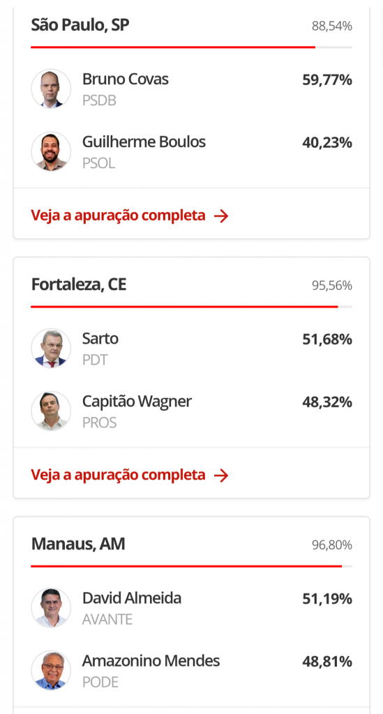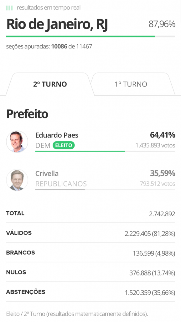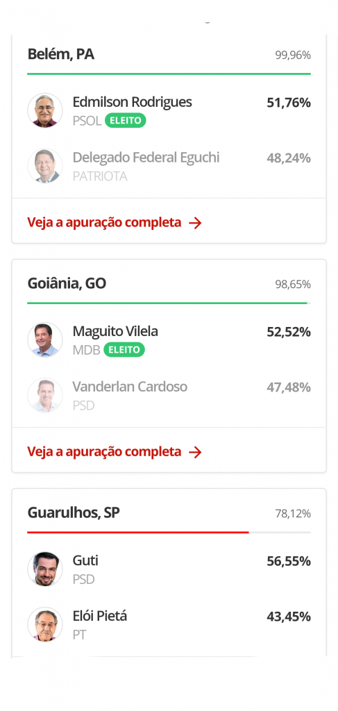 Acompanhe em tempo real o resultado das eleições 2020 para o segundo turno de prefeitos, com dados de apuração do TSE.