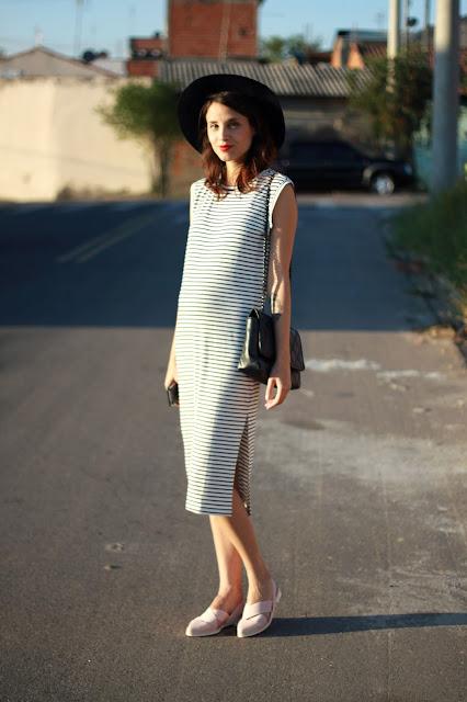Esse já é um look final da tarde, chegando à noite e fica bem arrumado com esse vestido midi.