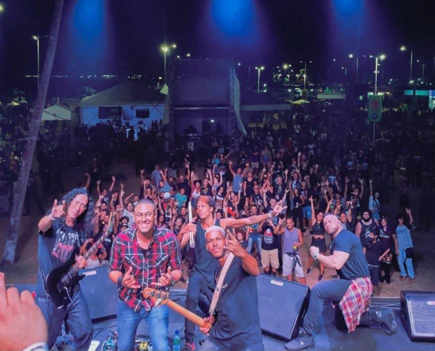 “Nosso dia de apresentação, 18/02, fomos a primeira banda, saímos cedo de catu num micro-ônibus disponibilizado pela Prefeitura da cidade, com o apoio da secretaria de transporte e cultura (wasigton e Jocely). fomos bem recebidos por Sandra e toda a comitiva do Palco do Rock, uma estrutura digna de grandes festivais, o local estava cheio de pessoas e motocilistas da região, iniciamos o show às 19h, com uma homenagem a Rogério Metal tocando sua música Susy.” Destaca Angelo.