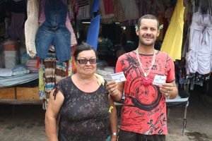 Dona Maria do Carmo Mendes e seu filho, Erifante Cleiton Pereira fizeram a compra de dois cupons. O sonho de Cleiton é ter uma moto e ele viu no sorteio uma chance de realizar o que tanto deseja. “ Eu não gasto com bebida, com farra, com nada, o meu sonho é ter uma moto para me ajudar na locomoção pela cidade”, diz Cleiton.
