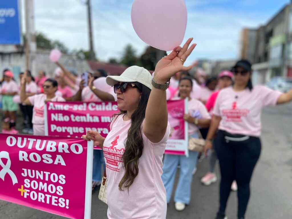 Catu realiza caminhada do Outubro Rosa na Aruanha para conscientizar sobre o combate ao câncer de mama
