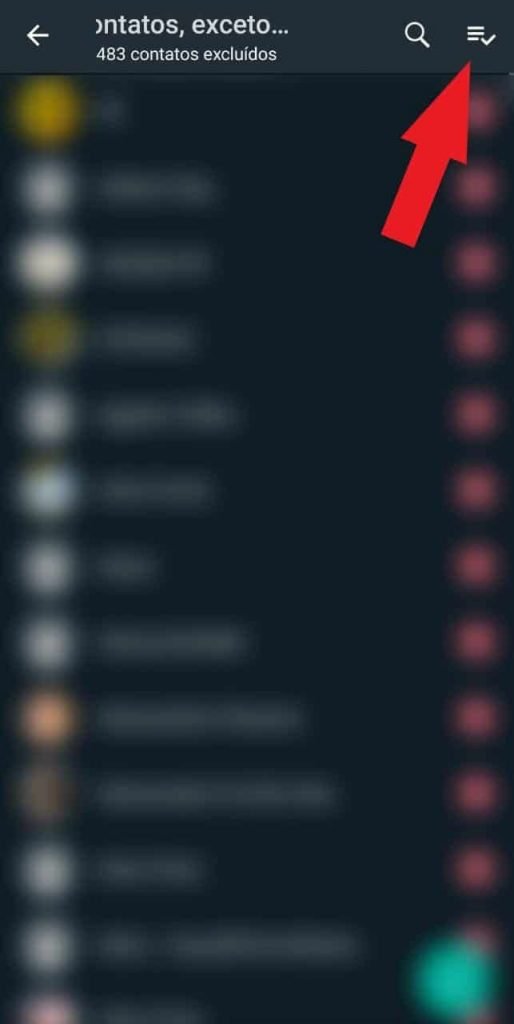 8 – Na janela seguinte, clique no ícone da lista com um tique no canto superior direito e selecione todos os contatos.