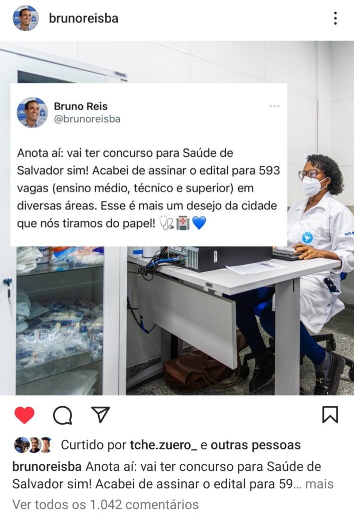 A Prefeitura de Salvador  anunciou, na quarta-feira (5) e logo replicado por vários sites um concurso para a área da saúde. São 593 vagas para os níveis médio, técnico e superior.Matéria Alô Alô Bahia