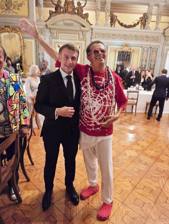 Ed Ribeiro, o ‘Pintor dos Orixás’, participa de jantar com presidente da França, Emmanuel Macron