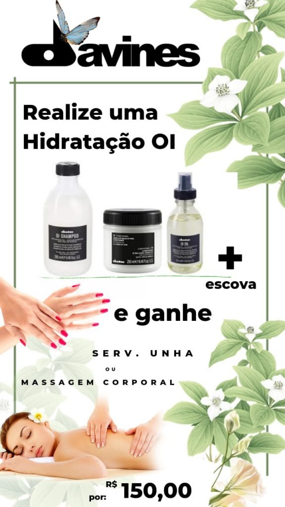 - Tratamento “OI”, oferecido pelo local, onde acompanha escova mais o acréscimo de serviço de manicure ou massagem corporal.