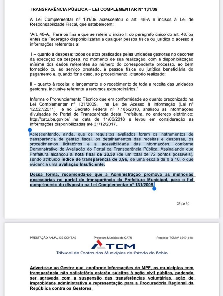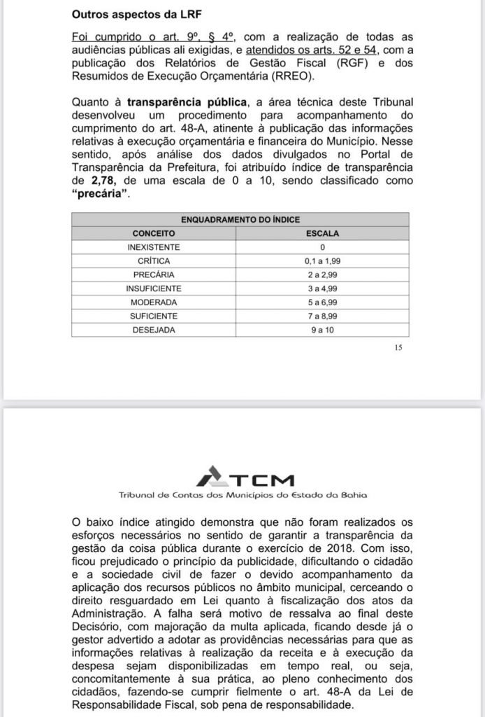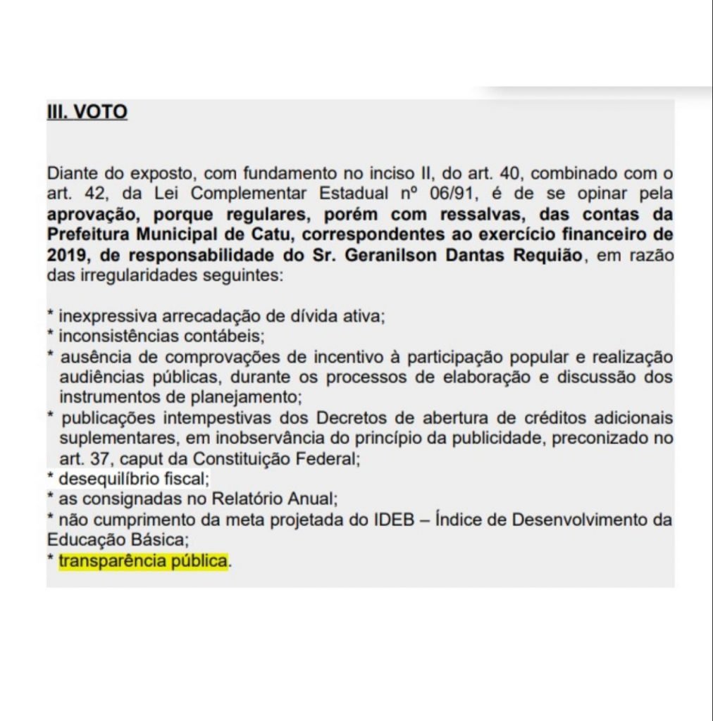 “O Tribunal que resolveu arquivar a denúncia feita contra o ex-gestor, dando como improcedente a falta de informações dos dados da Saúde no Portal da Transparência, foi o mesmo que, em março, aprovou com ressalvas as contas do mesmo, referentes ao exercício de 2019, e que imputou-lhe uma multa pelo mesmo motivo: falta de transparência. E pelo mesmo motivo da falta de transparência questionou em 2018, 2017 a então administração.”