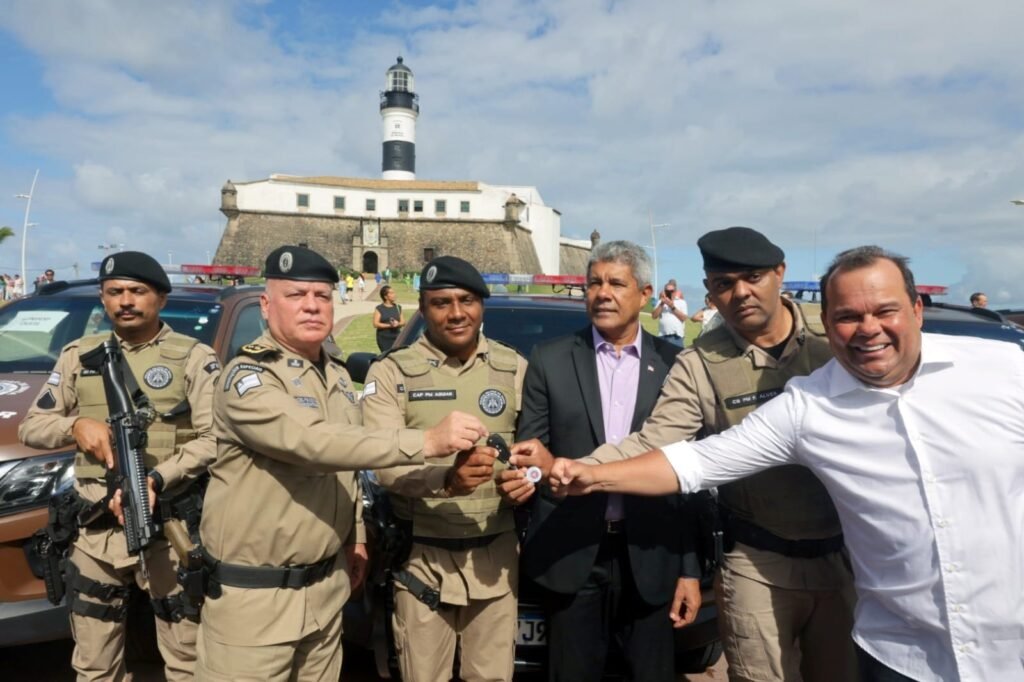 Ao lado do vice-governador, Geraldo Júnior, Jerônimo anunciou que outras 17 viaturas serão entregues para a região extremo sul do estado. “Aqui, hoje, nós estamos abrindo um novo ciclo de entregas. É um compromisso do nosso de programa de governo. Estamos entregando viaturas semiblindadas, as portas laterais, o capuz e vidro dianteiro [são blindados], uma estratégia em função dos últimos acontecimentos, da quantidade de viaturas atingidas nesses locais”, afirmou o governador, que também estava acompanhado do secretário de Segurança Pública, Marcelo Werner, e do comandante-geral da PMBA, Coronel Paulo Coutinho. Jerônimo ainda anunciou que as câmeras corporais nos uniformes dos policiais já vão ser testadas dentro dos próximos dez dias.