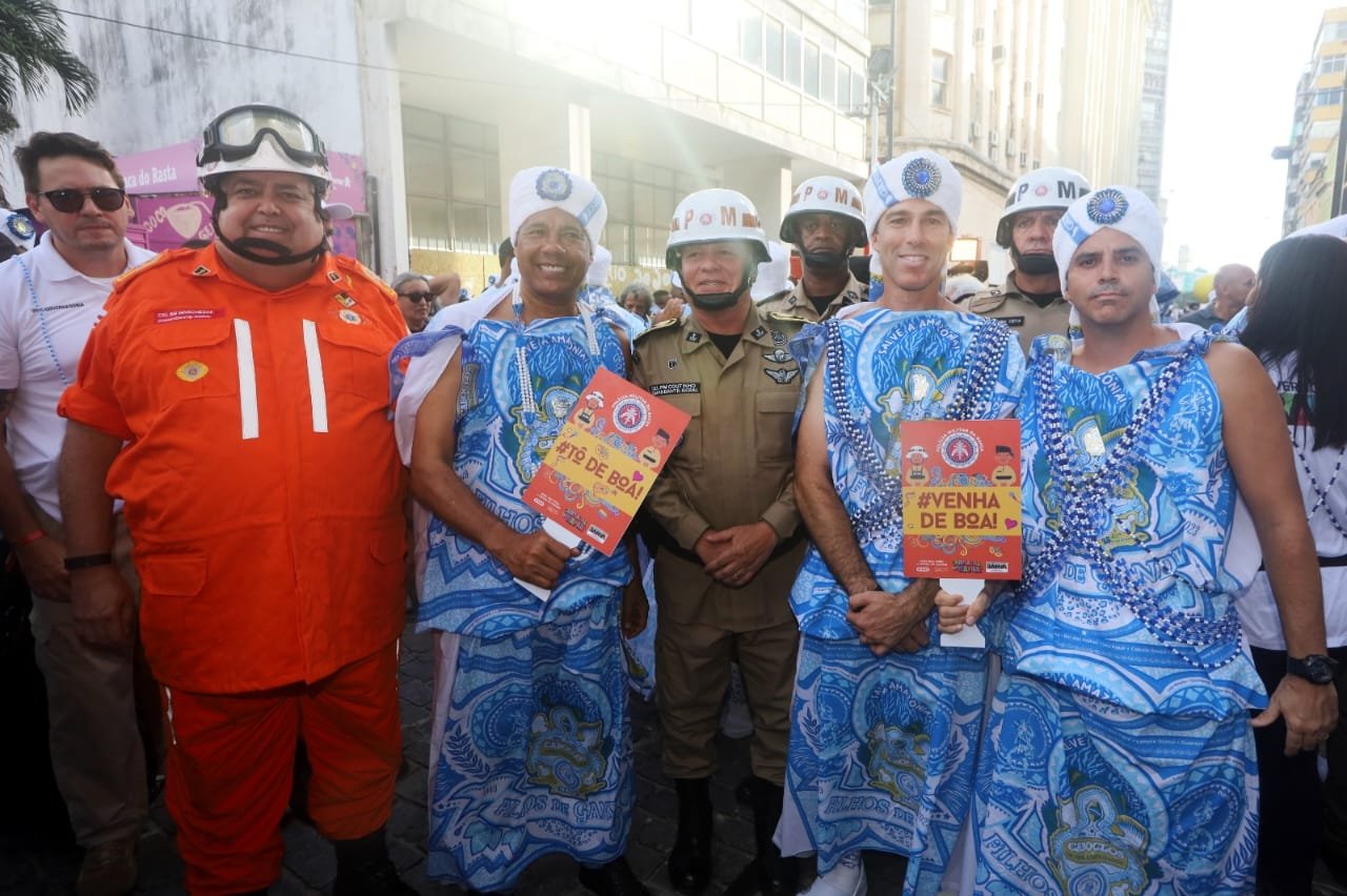 O vice-governador Geraldo Júnior e os secretários de Justiça e Direitos Humanos, Felipe Freitas; do Turismo, Maurício Bacelar; e da Segurança Pública, Marcelo Werner, também acompanharam o governador na saída do bloco.
