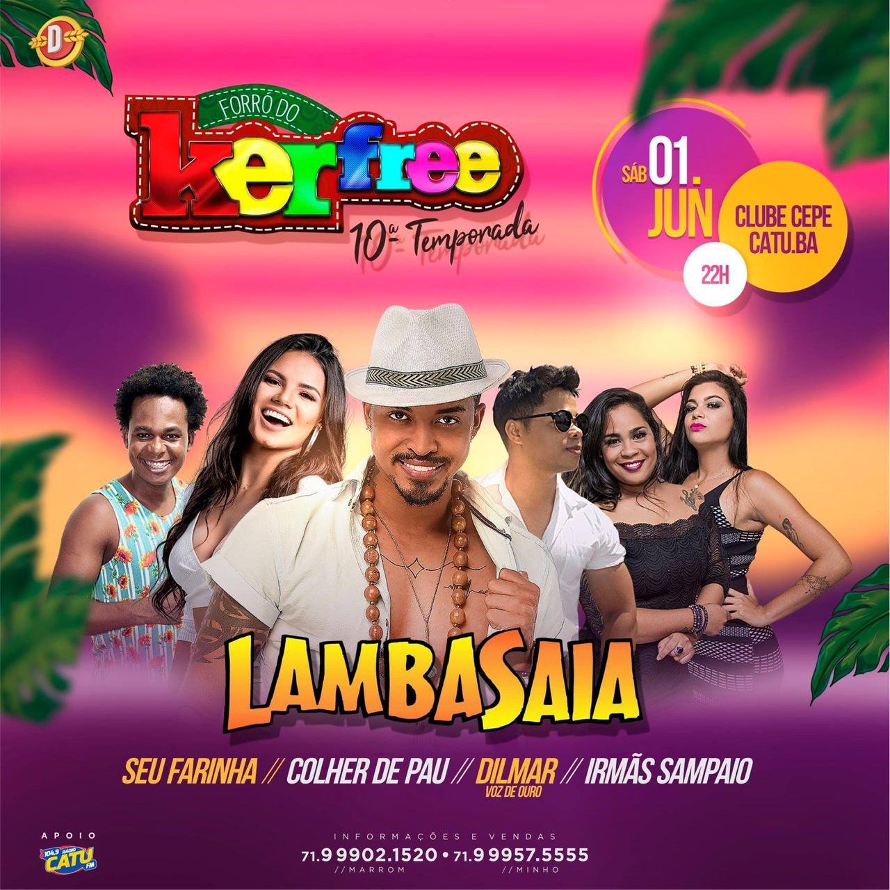 No dia 01 de junho Lambasaia estará no clube CEPE-Catu, trazendo seus sucessos atuais e os antigos de renomados artistas lambadeiros dos anos 90, para a turma de Catu e região, poder aproveitar à noite inteira com uma overdose de lambada. Os ingressos podem ser adquiridos antecipadamente, na Feste Video, localizada na Aruanha e na Menina Biju, casadinha ou individual.