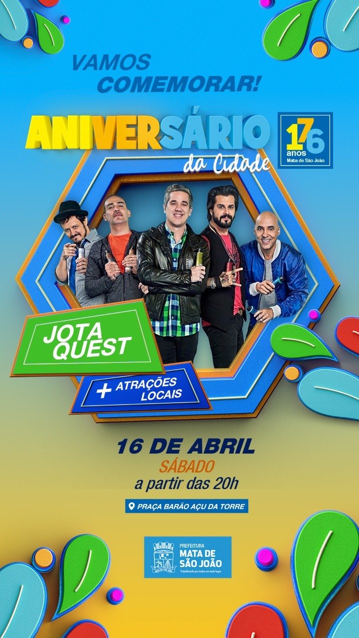 As datas e horários da programação ainda não foram detalhadas, mas a atração principal do aniversário da cidade já está confirmada. A banda de rock nacional Jota Quest, toca pela primeira vez no município para animar o festejo.