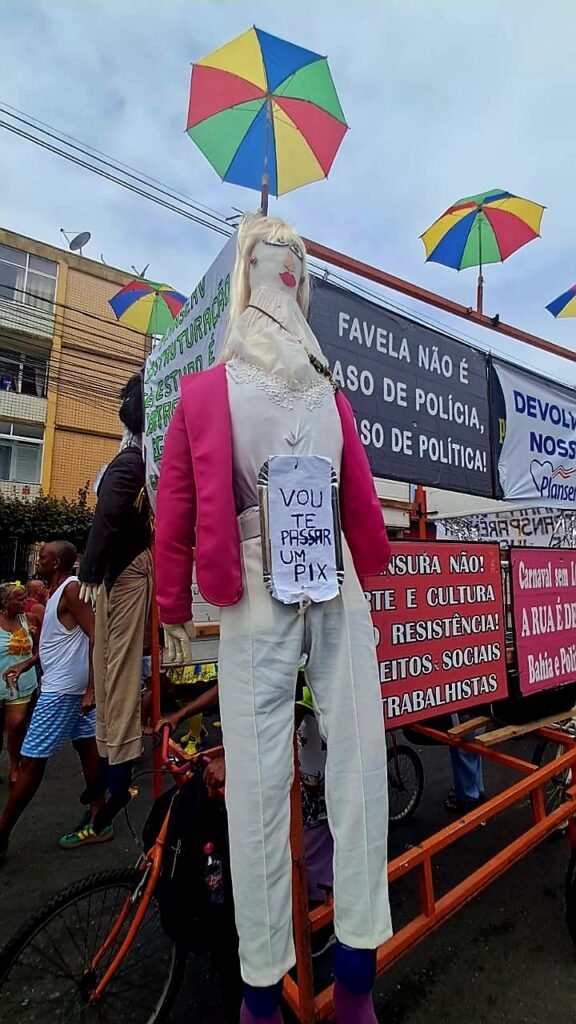 Manifestação histórica do Carnaval de Salvador reúne críticas políticas, memória popular e protestos como o movimento “Devolvam o Nosso Planserv”.