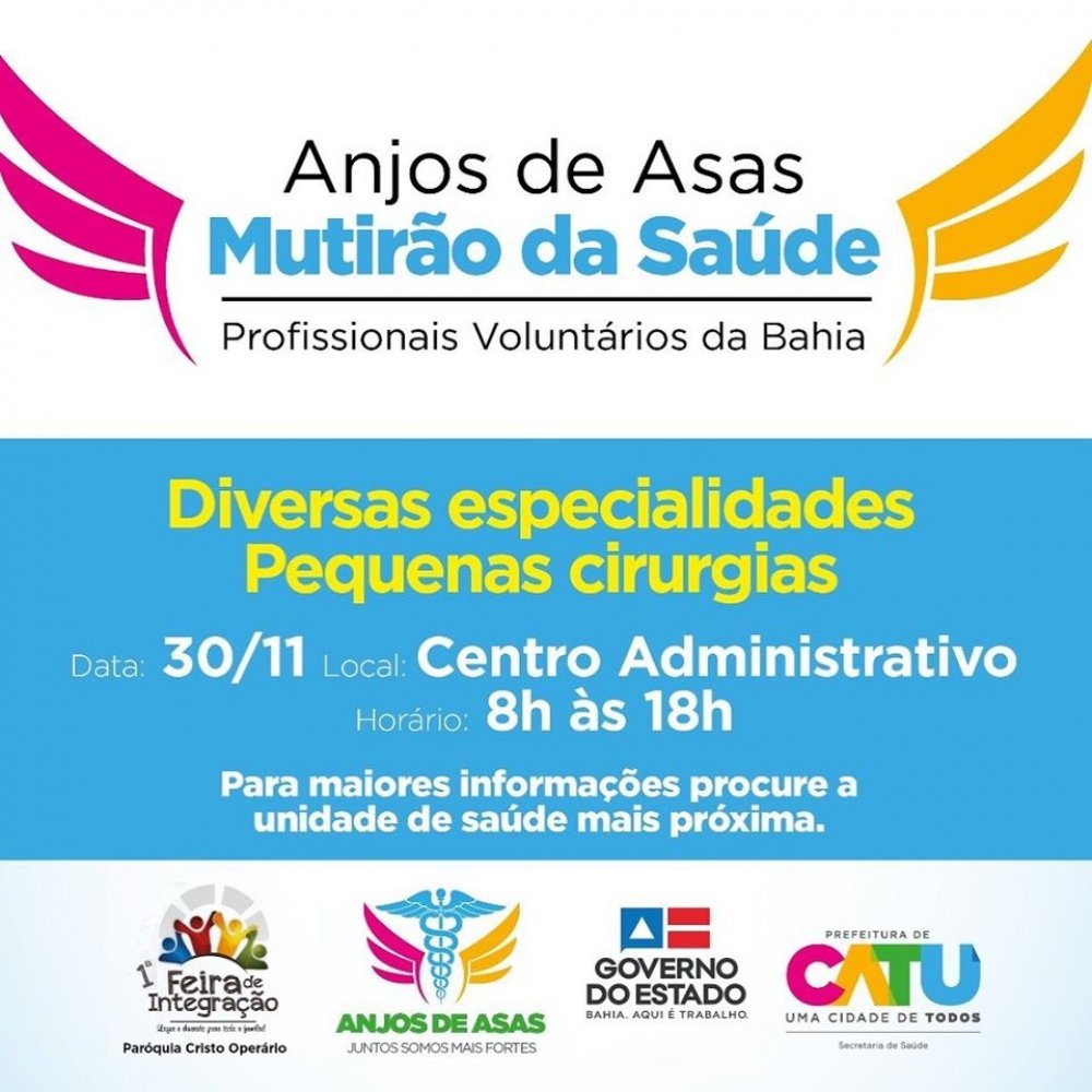 A Prefeitura Municipal, por meio da Secretaria de Saúde tem prestado ótimos trabalhos no município através dos Mutirões da Catarata, triagens e encaminhamentos para cirurgias eletivas, atendimentos psicossociais, entre outros. O Mutirão da Saúde será mais um evento que cuidará com excelência da saúde do povo catuense. Fazer mais e melhor pela nossa população é um compromisso dessa gestão.