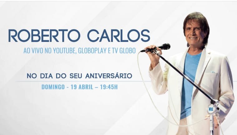 No próximo domingo, 19 de abril dia do índio, Roberto Carlos Braga, o Rei da MPB o cantor “Roberto Carlos,” capixaba de Cachoeiro do Itapemirim, que nasceu no ano de 1941, completa 79 anos. E pegando a onda desse ano, a festa será on-line, por conta do isolamento social devido e da pandemia que o mundo vive, o cantor vai fazer uma live musical ao vivo, à partir das 19h e 45 min do próximo domingo, ao vivo no seu canal no youtube, googleplay e TVGlobo.