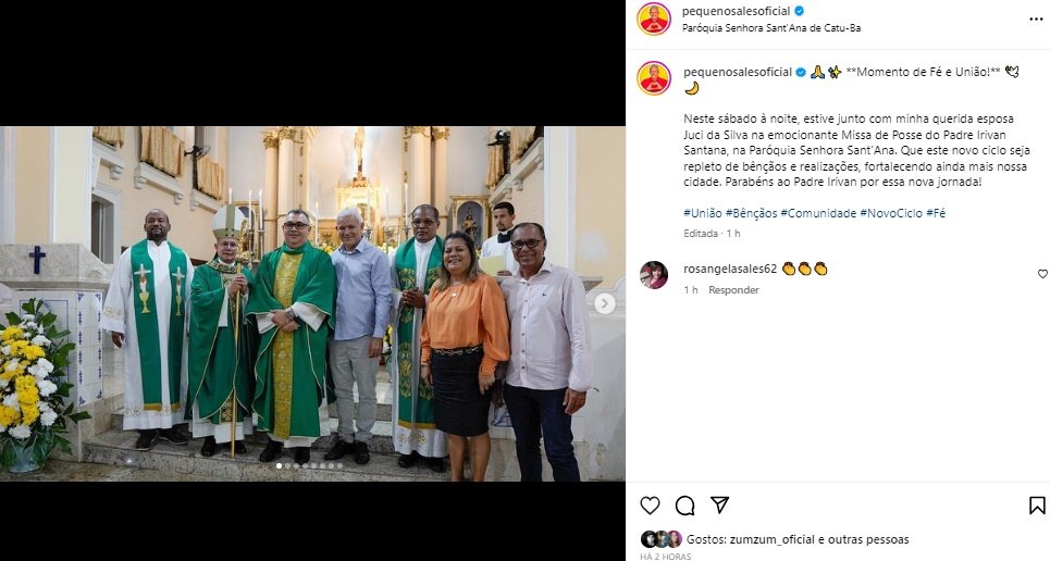 A solenidade foi realizada na presença paroquianos, Dom Francisco Vidal, bispo diocesano e de autoridades como o prefeito Pequeno Sales, a primeira-dama Jucicleide Bezerra e o vereador João do Ônibus. Veja postagem das redes sociais do Prefeito: