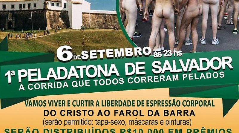 Marcada para o dia 6 de setembro, a 1ª Peladatona de Salvador promete encher as ruas da Barra com atletas completamente pelados. A “maratona nudista” é invenção do cantor de arrocha Valter das Virgens (34), que já pretende pedir liberação da Prefeitura.