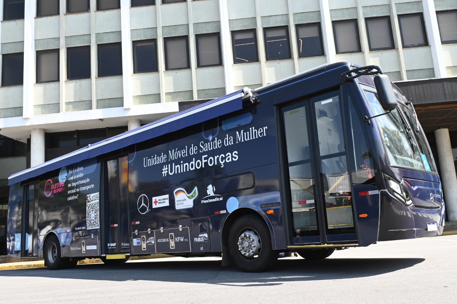 Dentro do ônibus cedido pela Mercedes-Benz, tudo foi adaptado para comportar dois consultórios onde serão realizados os exames de ultrassonografia e mamografia. O veículo – Modelo 500 Super Padron – convertido em Unidade Móvel de Saúde da Mulher, conta com mamógrafo digital Aurora DR, que se destaca pela tecnologia de captação de imagens digitais em alta resolução, com capacidade para atender aos mais variados tipos de anatomia de mamas. O equipamento vem acompanhado de um console com estação de trabalho e monitor com software intuitivo de fácil utilização para exames mais rápidos e precisos, Monitor de Diagnóstico 8 MP de 27 polegadas com tecnologia IPS, para exibição de imagens médicas e laudos e sistema de ultrassom portátil EVUS 8, que permite visão precisa da região em análise.
