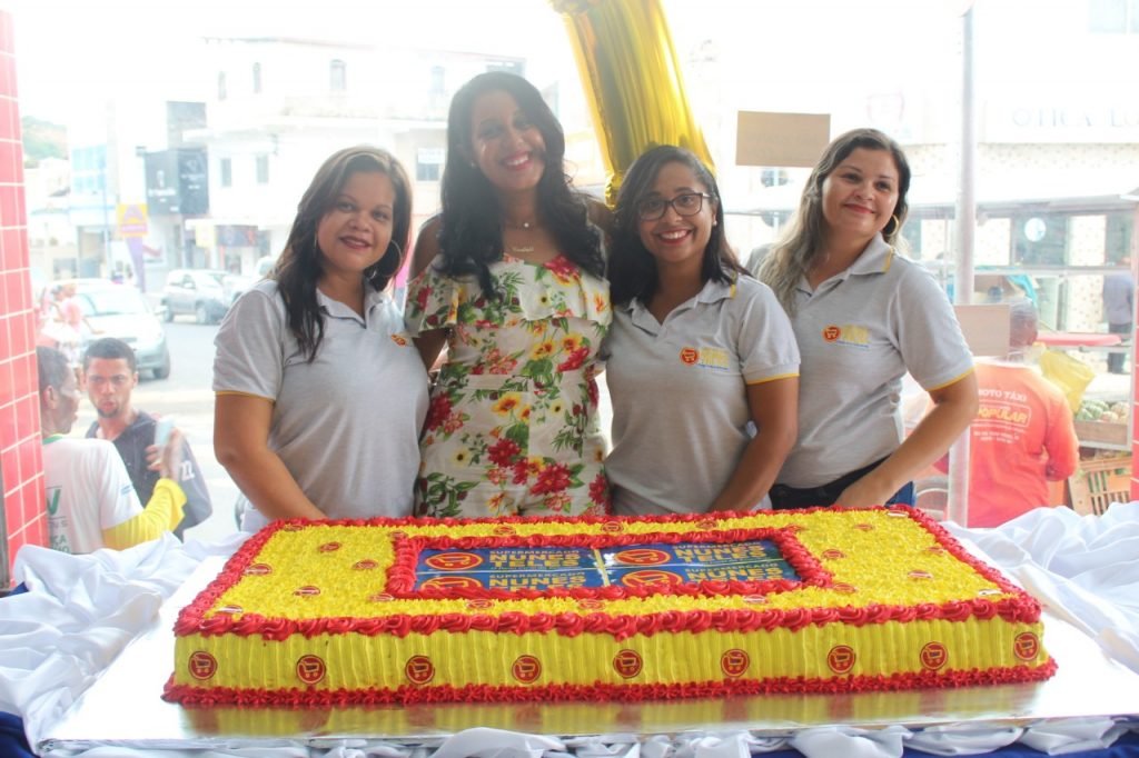 Com direito a balões, bolo, refrigerante, sucos, petiscos, brindes e muito mais, o supermercado Nunes Teles recebeu seus clientes no seu 1º aniversário e segue com suas promoções