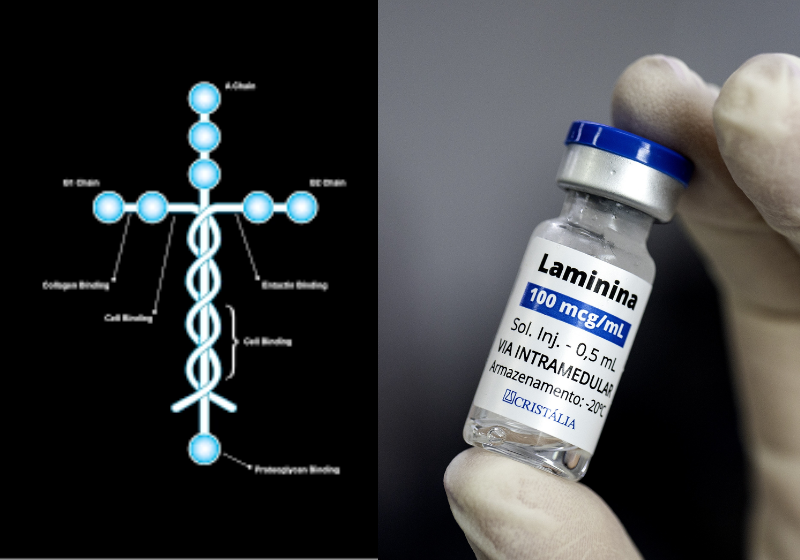 A laminina é uma proteína naturalmente presente no corpo humano, encontrada em diversos tecidos, como a placenta — membrana que envolve o bebê durante a gestação — e também em órgãos como os testículos. Em sua forma polimerizada, chamada polilaminina, ela forma uma espécie de malha biológica, composta por várias estruturas em cruz interligadas, capazes de servir como “pontes” para a regeneração neural.