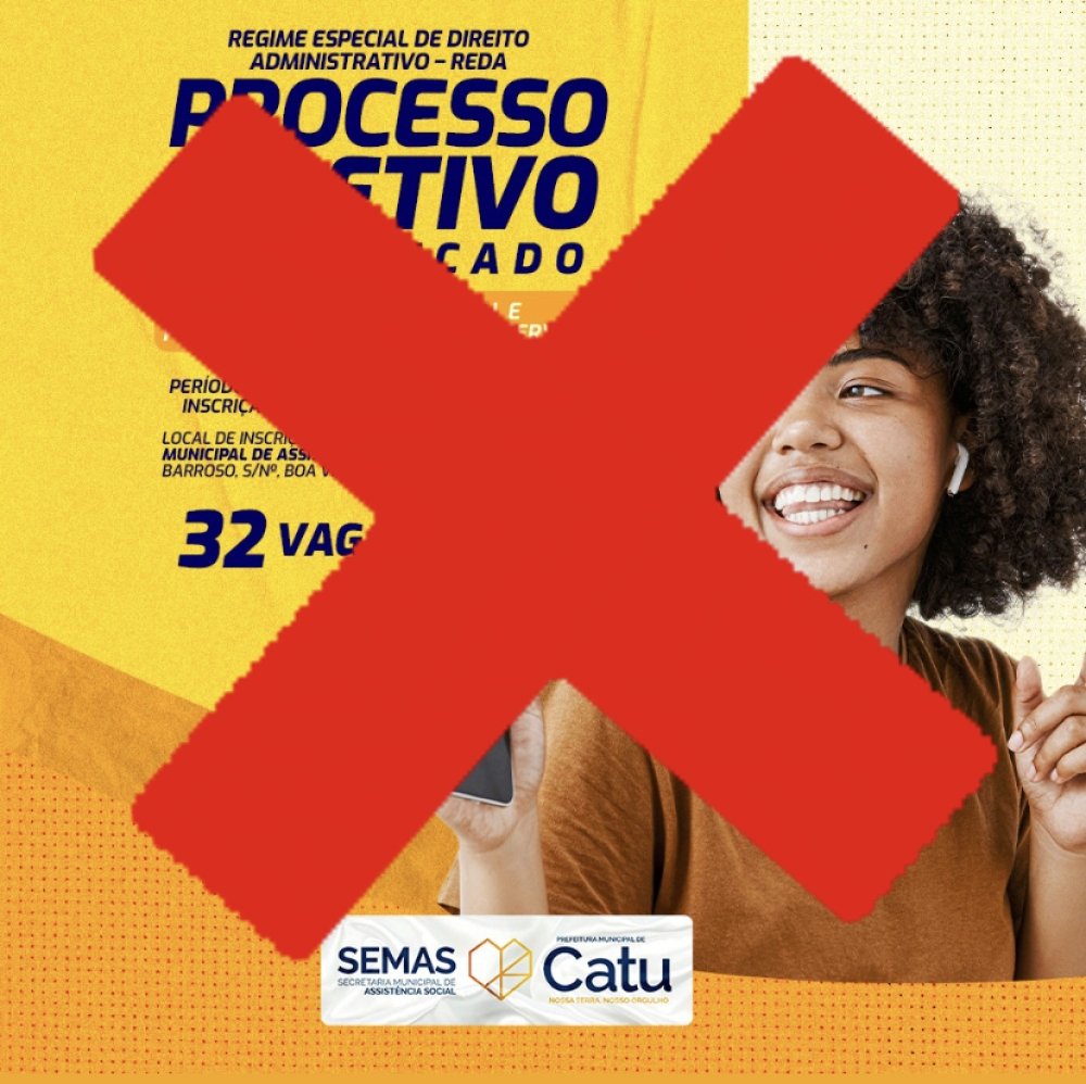 “Pedimos desculpas aos cidadãos catuenses e informamos que, em breve, será divulgada uma nova data para realização do processo seletivo. todas as informações estarão nas redes sociais oficiais da Prefeitura em breve.”