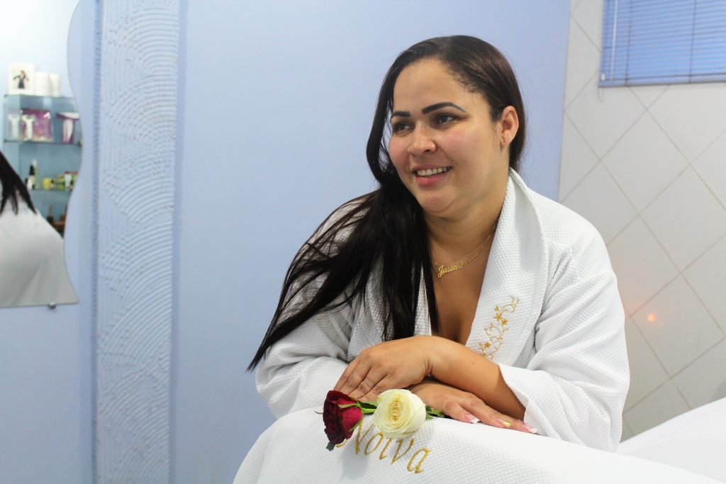 Dentre os serviços oferecidos desfrutados pela noiva em questão, estão Ofurô para os pés, massagem com pedras quentes e lanche especial, foram alguns dos cuidados ofertados que fizeram a noiva se emocionar durante todo momento no espaço.