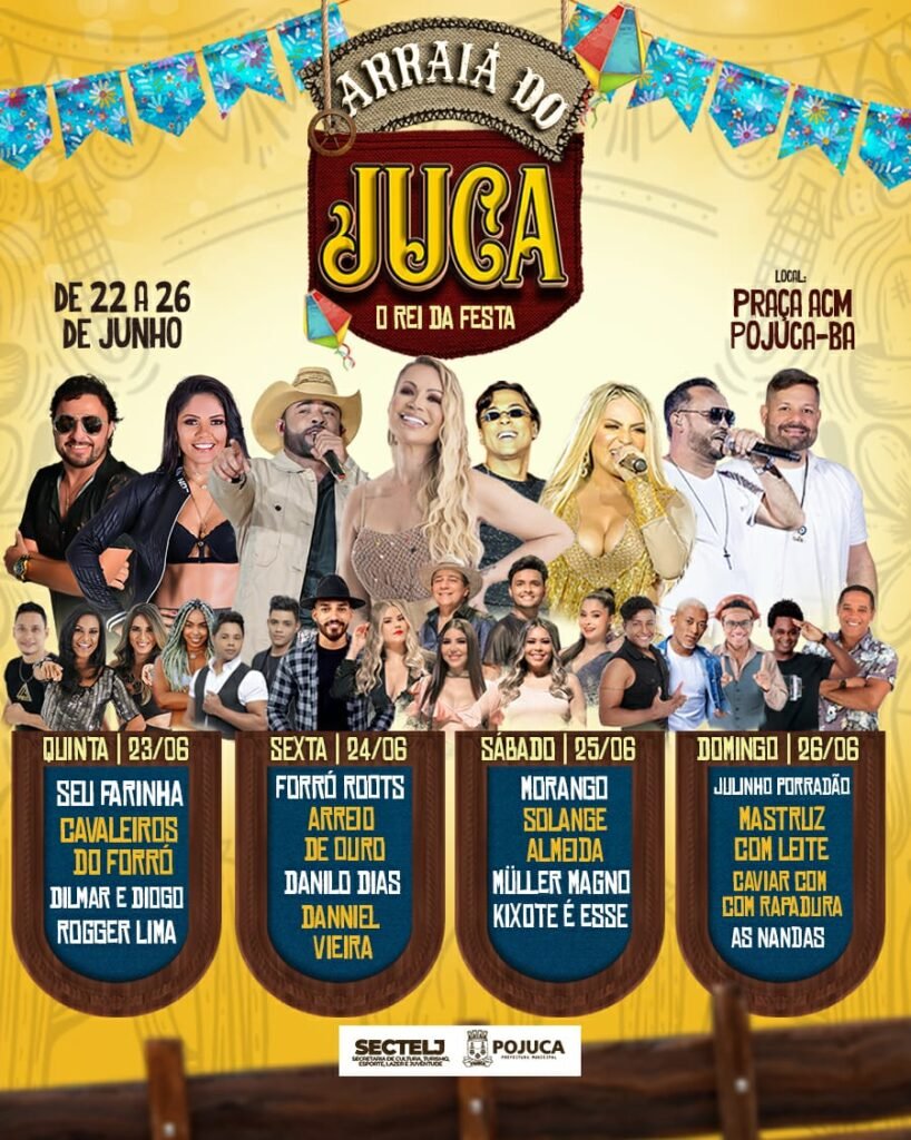 Após dois anos sem a maior festa tradicional da região devido a pandemia da Covid-19, a Prefeitura de Pojuca, por meio da Secretaria de Cultura, Turismo, Esporte, Lazer e Juventude (SECTELJ), anunciou através de suas redes sociais as atrações musicais que irão abrilhantar a festa.