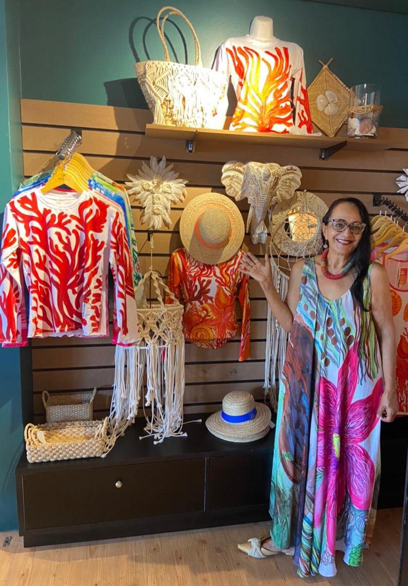 “Além de confortáveis, as peças são únicas e exclusivas. Cada peça é uma obra de arte pintada à mão com cores e desenhos que remetem ao ambiente do mar”, destaca a artista plástica Cleuza Francisca.